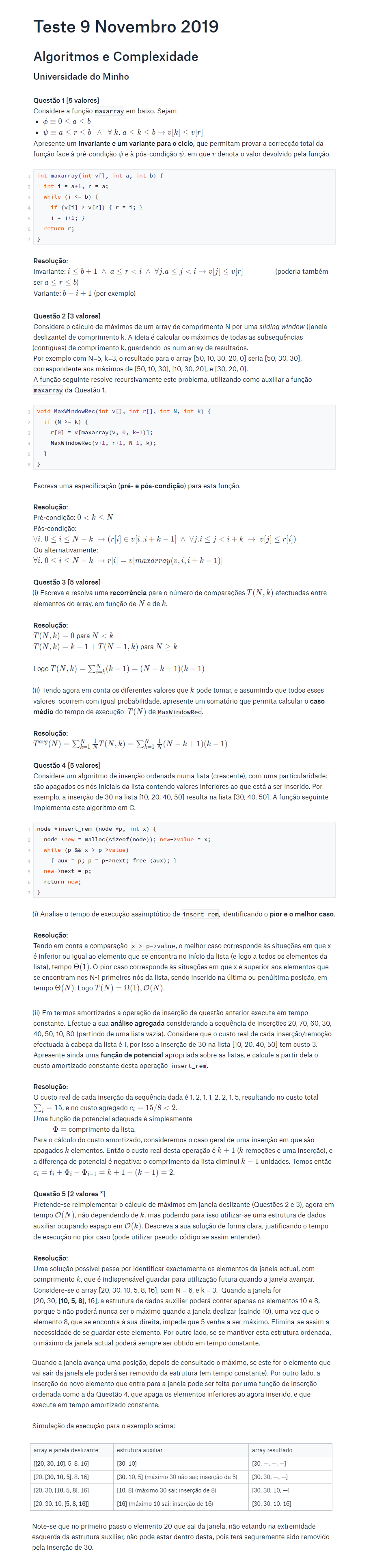Testes e Exames | Algoritmos e Complexidade