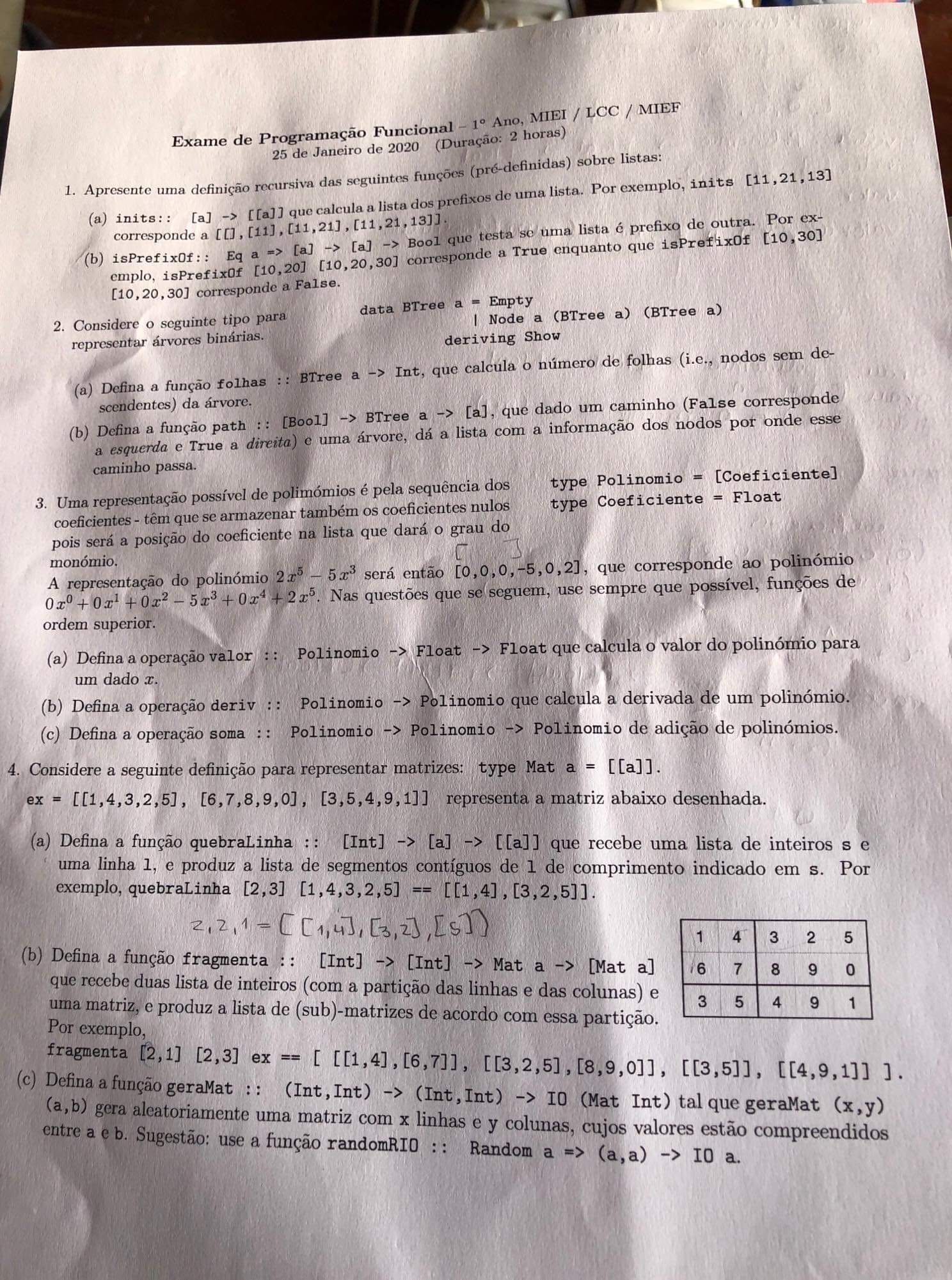 Antes do 1º teste, o aluno é dado pelo corpo docente uma coletânea de 50 problemas para ser revolvidos em Haskell.