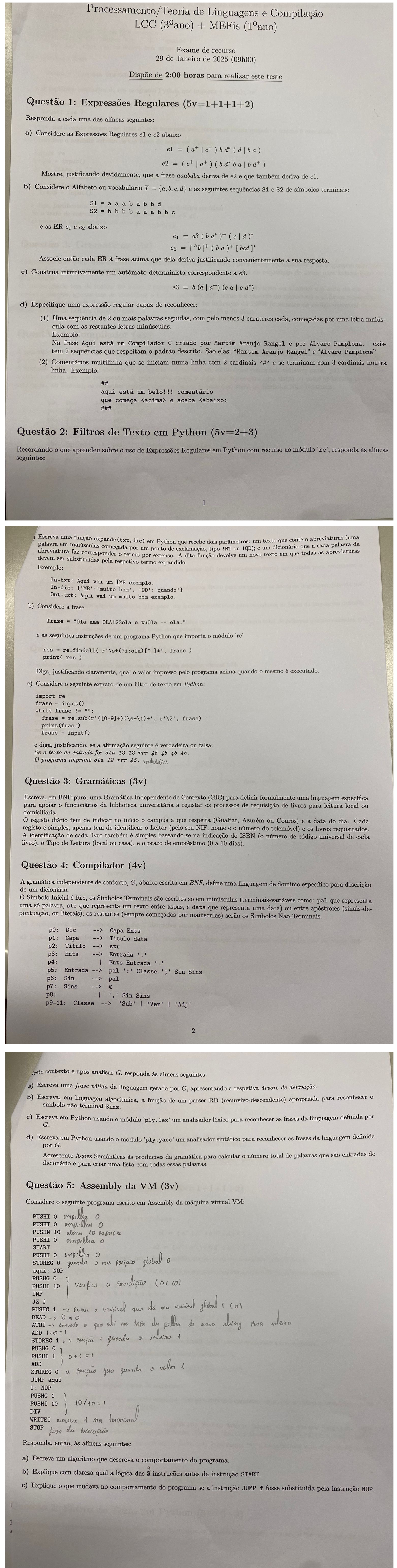 Testes e Exames | Processamento de Linguagens e Compiladores